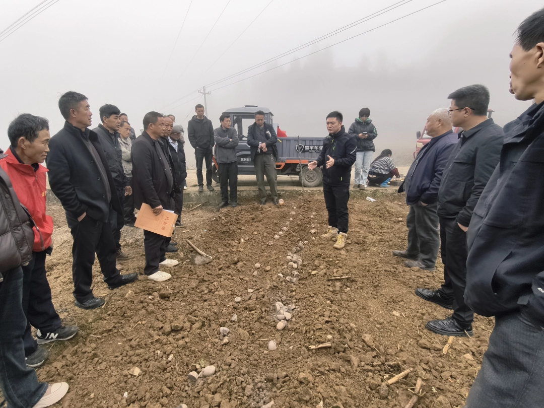金兰镇今年首次引进“黔芋9号”与“黔芋10号”两个新品种。由于当地农户长期以种植“威芋”系列为主,对黔芋系列新品种的栽培特性及管理技术相对陌生。为打消农户顾虑、确保示范效果,李飞站长亲赴一线,在清华村的田间地头开展了一场“面对面、手把手”的现场教学活动。