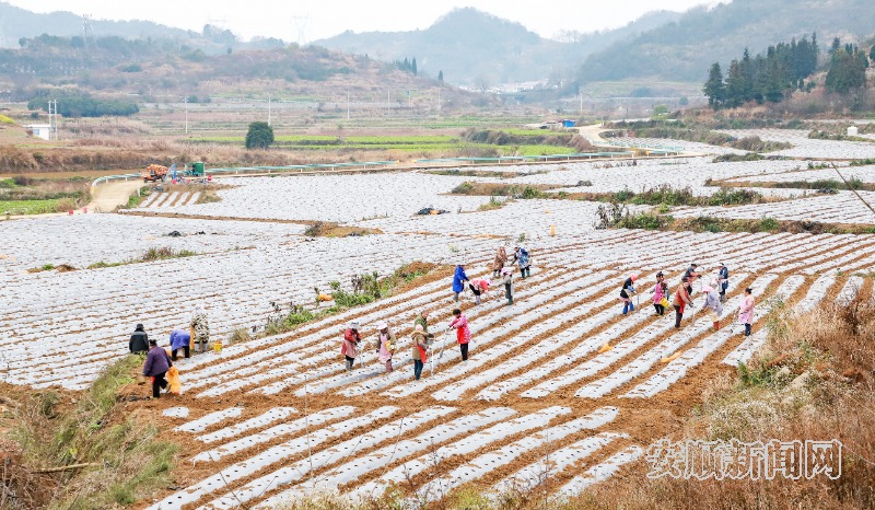 1月7日,平坝区天龙镇合旺村与天龙村的省级农业科技示范基地内,二十余名工人正在标准化田垄间有序劳作,进行马铃薯栽种作业。通常开春才栽种的马铃薯,如今在寒冬腊月抢种,背后是当地推动农业技术革新、提升土地效益的示范行动。